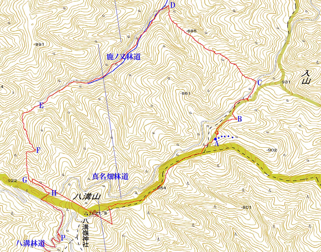 ・A〜Bの間、要注意です。全般的に荒れており、地形図など読みながら歩くコースです。