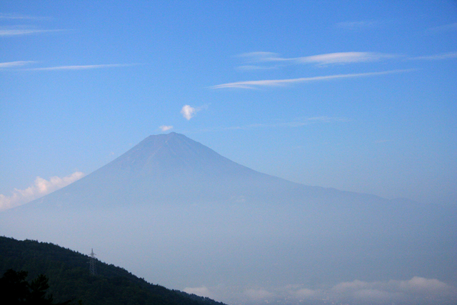 少し登り返すと富士山展望箇所となる。天下茶屋ではあれほどすっきり見えた富士山は、もう、雲で覆われている。