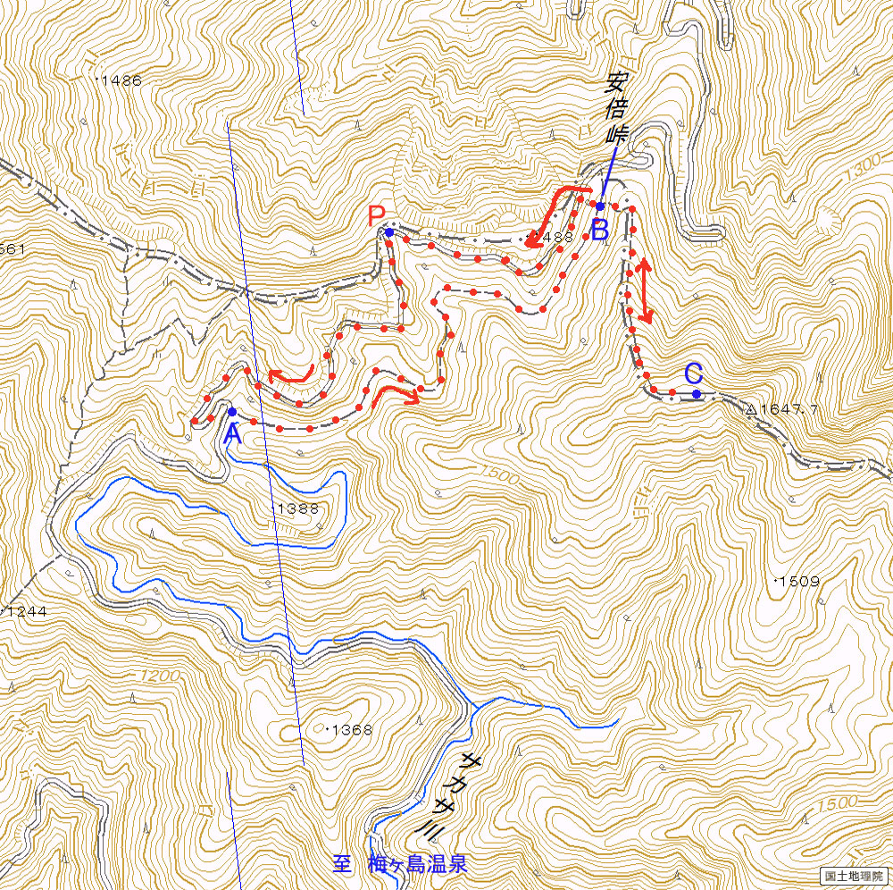 が咲いていることを思い出し、今回は安倍川源流から安倍峠・バラノ段尾根(私の付けた仮称です)というルートで歩いてみた。
