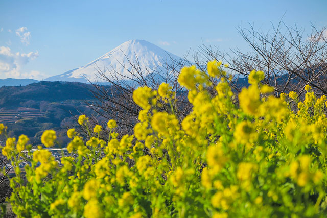 湘南地区でいち早く菜の花の咲く吾妻山で、「吾妻山菜の花ウオッチング」祭りが1/10〜2/8の間開催されている。菜の花と富士山のコラボレーションを
