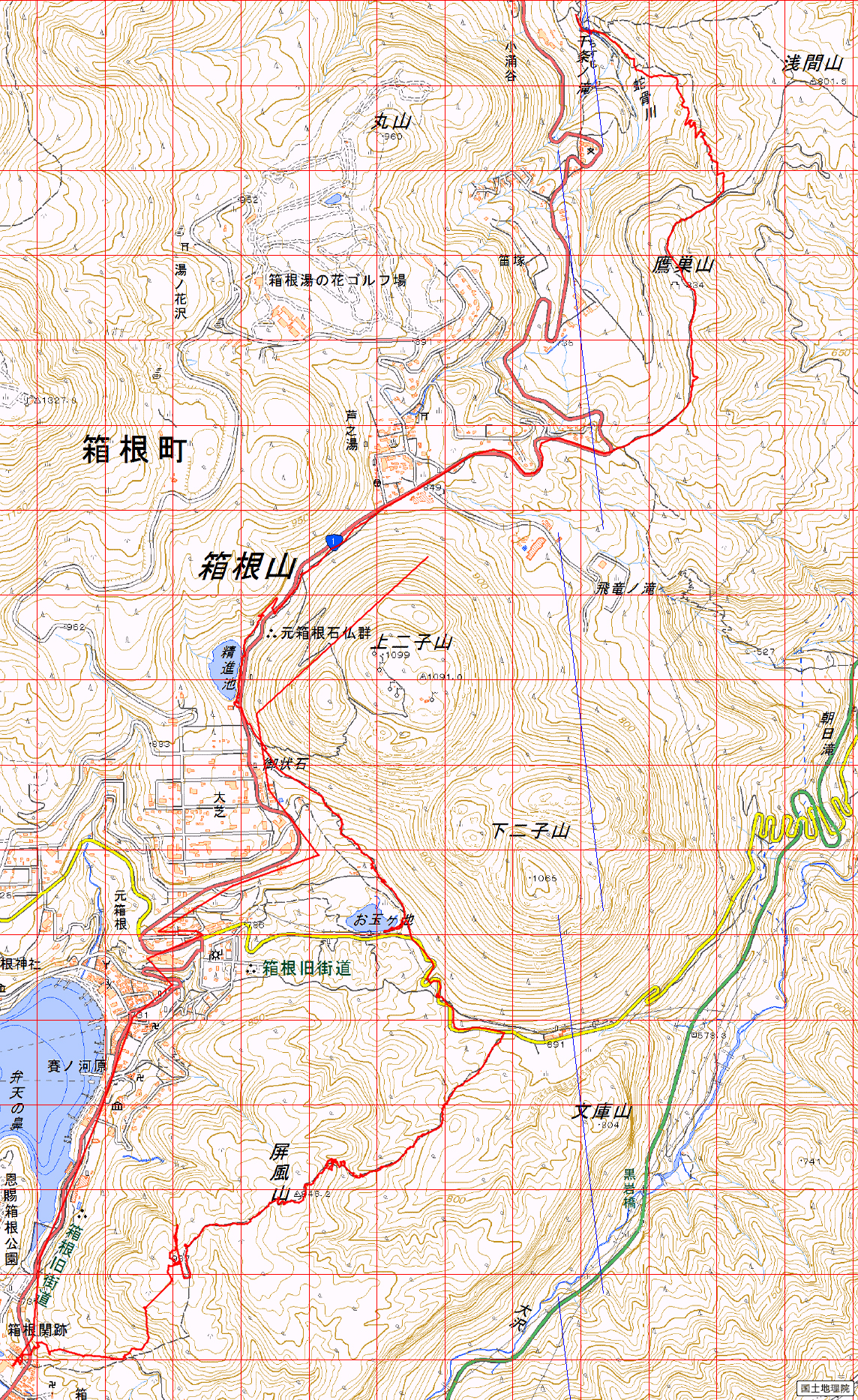 お玉の池12;19〜31---精進池入口13;13---精進池外れトンネル13;31---芦之湯13;46---湯坂路入口14;04---鷹巣山14;25---