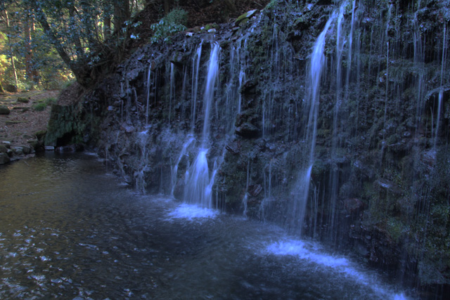 やがて、植林帯を抜けて石のごろごろした自然林の斜面を急降下すると、瀬音が聞こえてきて、飛龍の滝に着いた。