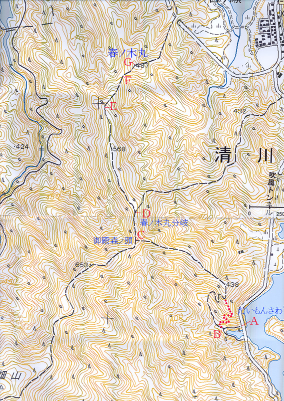 ・踏み跡が薄く紛らわしいのは鞍部(地形図F点)から春ノ木丸までです。ここは地形図の通り真っ直ぐピーク目指 して登るといいです。