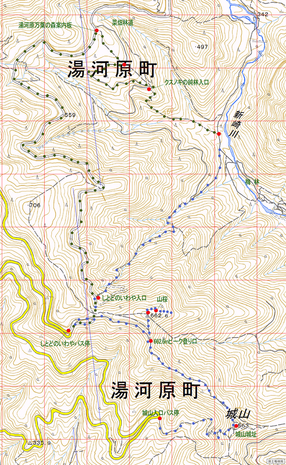 [城山入口バス停からししどの窟梅林入口]