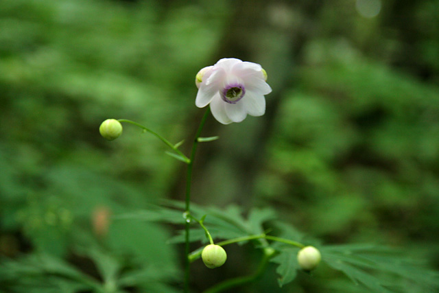 カラマツソウの咲くこの急斜面は、下部と上部がレンゲショウマが多く、傾斜が緩んでくるとレンゲショウマはなくなる。