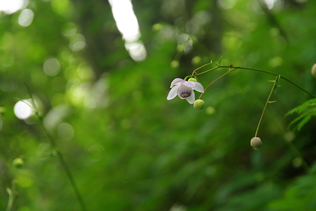 おかしくない雰囲気となる。カラマツソウの白い塊がアチコチに点在し、一瞬レンゲショウマか、と目を疑った。そしてよ〜くみるとその周りに緑の球が