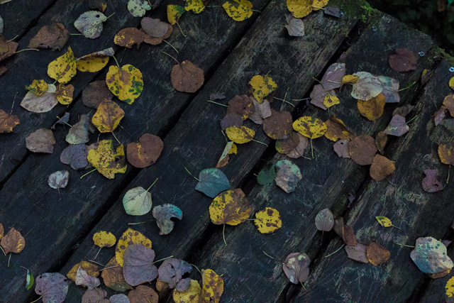 木道に甘酸っぱい香りのカツラの葉っぱが落ち、秋の兆しを感じさせる。最近の異常気象の大雨で、沢の水量が多く、瀬音が心地よい。