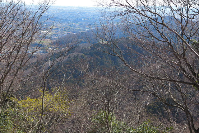 コナラやクヌギ、山桜などの落葉広葉樹の自然林で明るく見晴らしがよくなかなかいい道である。ただ、かなりの急降下で、こんなに登ったのかと思うほど下る。