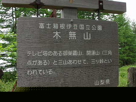 | 少し行くと草原の中に標識が立ッている。何だろうと思ったら木無山山頂であった。