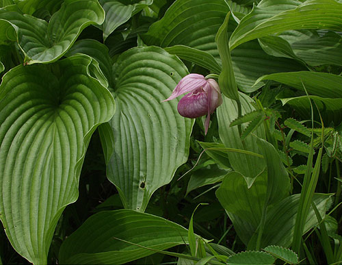 頂上らしくない頂上である。周りは一面お花畑である。しかし、ギボウシの葉っぱだけで花は何も咲いていない。花というと
