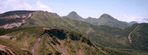 振り返ると美しいスロープの鞍部の両脇に西天狗、東天狗が横たわっている。