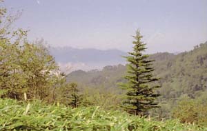 笹の原からは右手に遠く青い山並が見える。方向からして中央アルプスのようである。