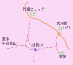 1周するコースとしては、甘利山山頂から汁垂ヒュッテへ下るのと、千頭星山方面に下って平坦になったところ直ぐに