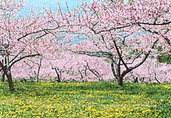 がピンクや白に染まっている。そこにはのどかな桃の花咲く美しい田舎の原風景があ