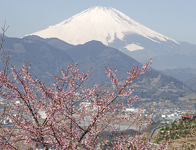 開けたところはミカン畑や梅林で、梅は日差しでまばゆいばかりに輝き、目の前に富士山がクッキリと眺められます。