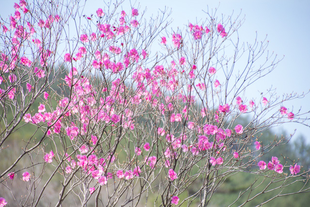 ピンクにひときわ輝くアカヤシオは実に美しかった。