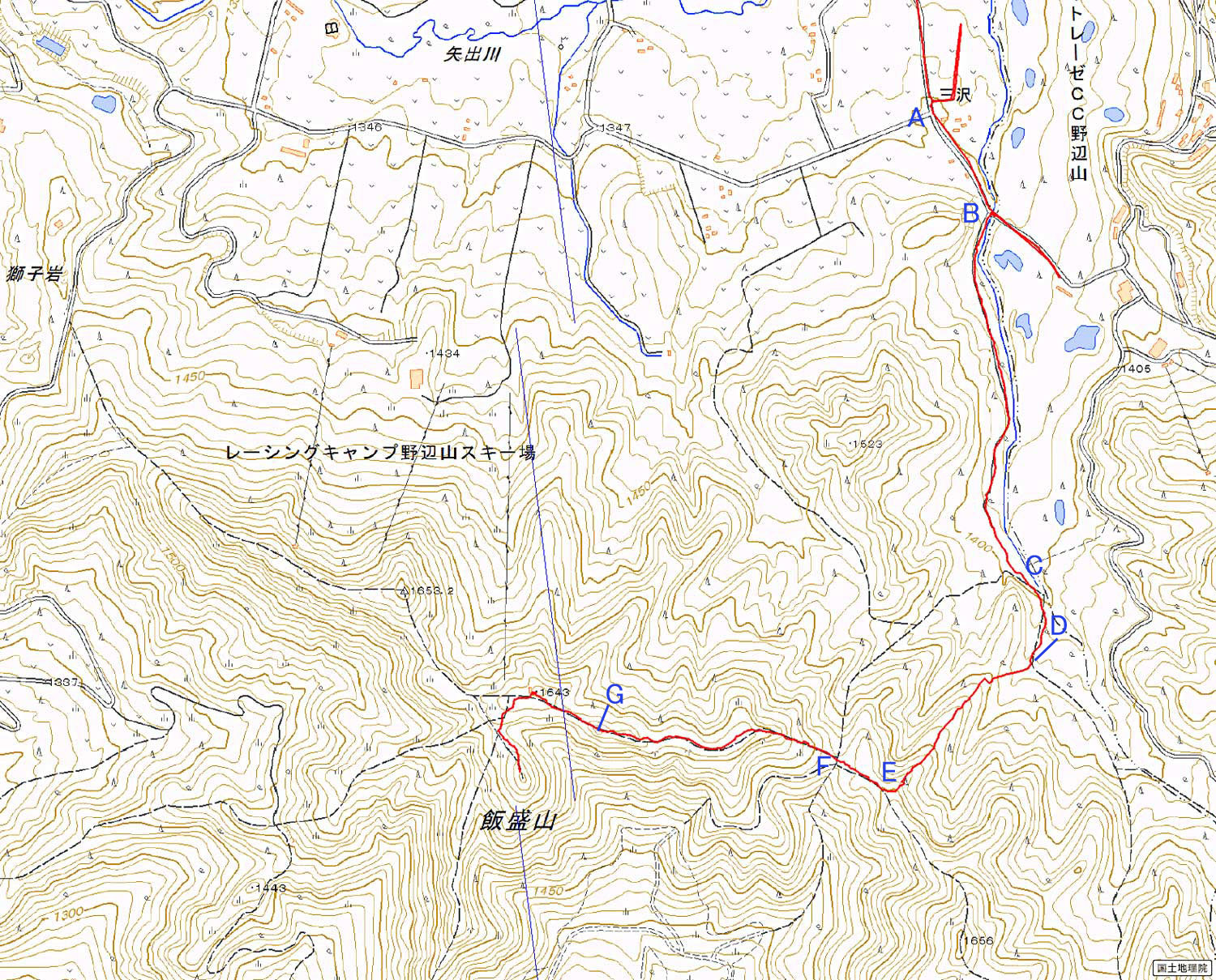 十文字峠(map-F)9:17---岩場ピーク10:08(map-G)---飯盛山10:33〜38---十文字峠(昼食、map-F)11:32〜52---案内板・道標(map-D)12:16