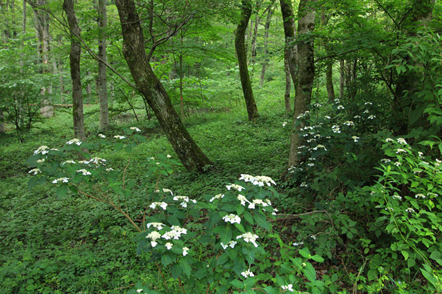 紫陽花咲くケヤキの森