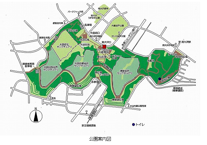 ・多摩境8:40---パークセンター入口(map-C)8:56---パークセンター9:03---大田切池9:09〜22---鮎道9:31---戦車道9:44
