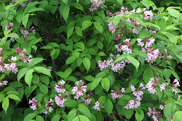ピンクのタニウツギが見ごろである。しばらく行くと、右の林から登ってきた山道がゲレンデを横断してゆく。倒れた道標には六合目とある。