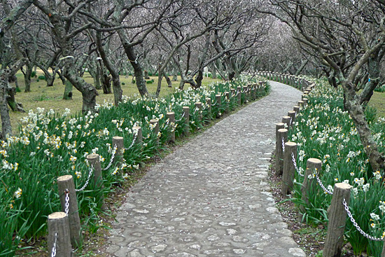 少し遅かったこともあったかもしれないが散歩する人と行きあう程度で、予想したように静かな梅林である。 いったん下って梅林の遊歩道を登り返して行く。