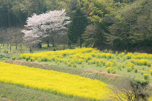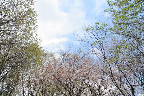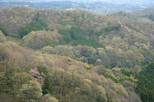 | 小野神社〜七沢森林公園〜順礼峠〜白山〜飯山観音 ('07-04-04歩く) 桜が満開になったが孫が3/上旬から一ヶ月も来ていて山歩きはできないでいた。 ようやく、孫たちが泊りがけで出かけて一日空いたので、県立七沢森林公園から桜まつりを開催していると思われる飯山観音へ歩いてみることにした。 今回は周回コースでないのと近場であることから電車とバス利用とした。 いつも車であるのでどのバスを利用したらよいか分からない。 本厚木から七沢行きバスあたりが順当なところであろうと思ったが、厚木市内が込むので、愛甲石田まで行って、そこから以前お世話になって 勝手知っている七沢リハビリテーション病院行きのバスに乗ってゆき、病院から桜咲く自然保護センターを径由して七沢森林公園の表玄関の陸橋「森のかけはし」に行こうと計画を立てる。 念のため、七沢森林公園から飯山観音までのルートは歩いたことがないので1/25000地形図を持参する。 愛甲石田に着いたところ、病院行きは30分も待たねばならない。 松蔭女子大学行きはすぐあり、切符売りのおばさんに聞いたところ、「小町宮前」というところで降りて、七沢行きの本厚木からのバスに乗り換えると よい、という。とりあえず乗ることにする。春さき、「小町宮前」バス停あたりを車で通ると、北側の里山は桜のピンクと新緑の萌黄色に被われすごくきれいである。 それに高松山ハイキングコースという道標が立っているのも見つけていたし、通るたびに一度歩いてみたいものだと思っていた。 もしかしたらあの尾根を北の方に行くと 七沢森林公園まで行けるかもしれないと思い、バス停の北側の里山に取り付いてみることにする。「小町宮前」バス停の 前は出光のガソリンスタンドである。スタンドの人に高松山の登り口を聞くと、小野山(?)ならすぐガソリンスタンド左横の道を行って突き当たったら左に行くとあるよ、と 教えてくれた。山の名前は違うが行って見ることにする。5分も行くと、小野緑地の案内板と高松山ハイキングコース・小野神社の道標が立っている。 擬木の階段を登って行くと二つに分かれる。左側小野神社、真っ直ぐ高松山方面である。真っ直ぐ行く。右は果実の森になっていて 花梨のピンクの花が咲き、その向こうは山桜がいままさに満開である。コナラなどの自然林は芽吹いたばかりで萌黄色に染まっている。心地よい春の息吹きの色と香りと風を一杯に 感じながら上って行くと、尾根にたどり着き、道はTの字になる。右高松山、左小野神社である。この分岐に立ってみて方向からして七沢森林公園は 左である。どうもおかしい高松山径由ではいけないようである。 ここでやっと1/25000地形図を出してみる。車で通るときはつながっていると思ったが、青山学院大学、森の里ニュータウンを挟んで東は高松山尾根、西は七沢森林公園尾根と分断されていた。 これは一旦降りるしかないようだ。しかし、できるだけ尾根を歩いて森林公園側で降りたいので、左の小野神社の方向に行く。尾根は桜の木が続き、花もチラチラ散っているがまだ見ごろである。 この付近は桜の名所になっているようでライトアップのライトが敷設されている。 やがて桜に囲まれた小野神社に着く。左から先ほどの分岐からの道が登ってきている。右に桜の尾根が緩やかに下っていて、地図にない山道が伸びている。 この道を下ってゆく。 やがて眼下に桜に囲まれたFUJITA技術センターの建物が見えてきて、建物のフエンス沿いの道に降り立つ。そして道なりに少し行くと森の里ニュータウンや青山学院大学への大きな車道にでる。 これを右折して上がってゆく。左手に七沢森林公園からの尾根の終わりが見える。事前に調べてくれば良かったが、どこから取り付くかさっぱり分からない。農作業していたご夫婦がいたので、 七沢森林公園への道を尋ねる。 すぐそこから取り付きたい、と話したところ、やぶで行けないとのこと。森の里ニュータウンの山沿いの車道を行くと森林公園への登り口が見つかる とのことであった。 途中の並木公園あたりにも階段があって、それかな、と思って上がってゆくと展望台の行き止まりになり、また戻って尾根沿いの車道を行くなど道草して行くと、大きな案内板の立つ 南口に到着する。そこは森の里二丁目23番であった。シャクナゲの咲く舗装道路を緩やかに右手に登ると尾根に到達する。舗装道路をそのまま行ってもいいが、コナラなどの 自然林の尾根にも舗装道路と平行して山道があり、その山道を緩やかに登って行く。 もう、尾根に上がると尾根筋の道をどこまでも辿ればいい。やがて、ピクニック広場から上がってきている舗装道路を横断し、急登すると通いなれた 七沢森林公園のコナラの林立の美しい遊歩道となる。今、木立ちは新芽が出たばかりで淡いグリーンや萌黄色に装い、その間に山桜の薄いピンクが時々現れる。 また、いくつかのピークの右側は大きく開け、展望台となって