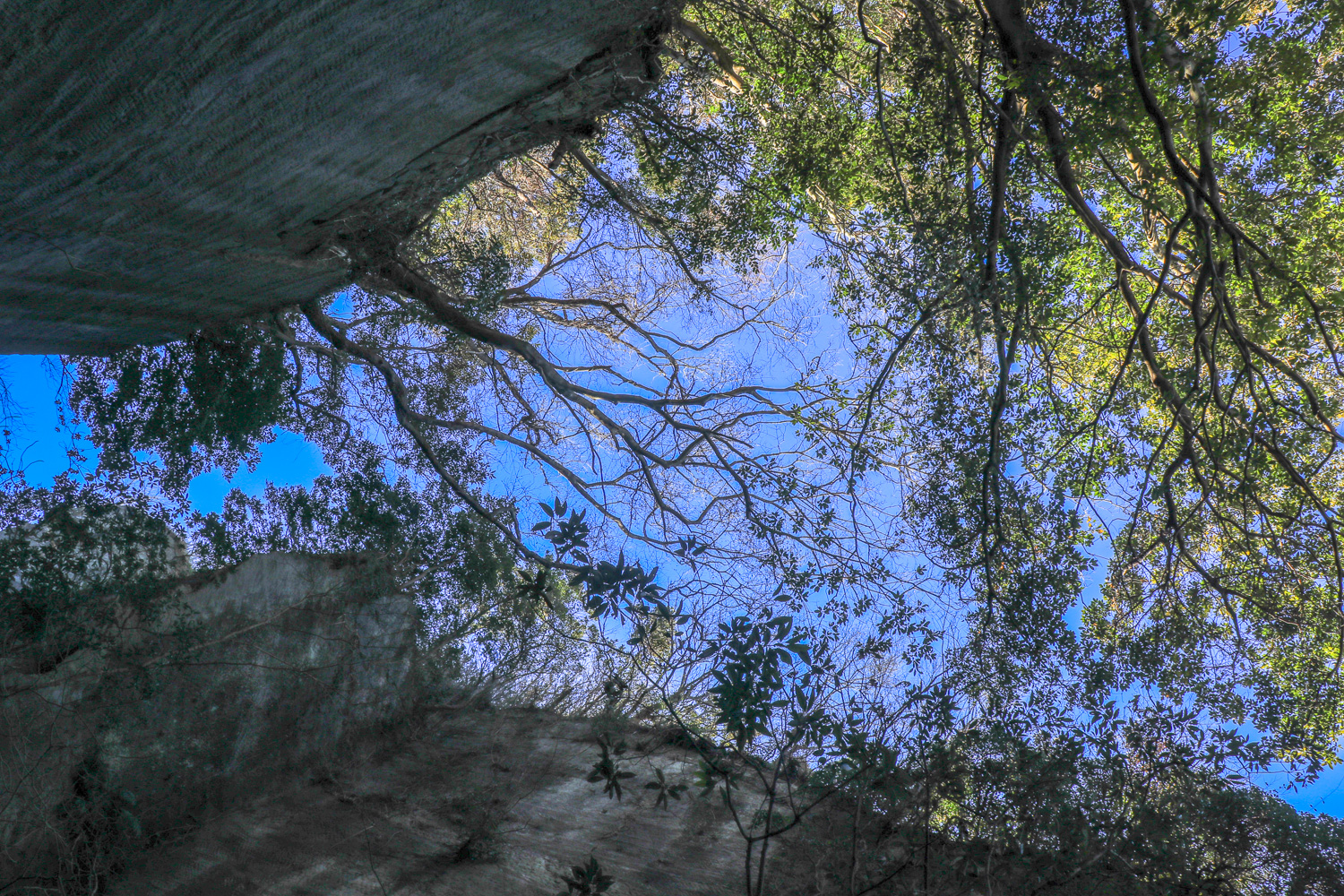 ここから、東京湾のみえる展望台まで標高差約120mの急こう配の石段が待っていた。途中までは石切り場やモリアオガエルの産卵池など