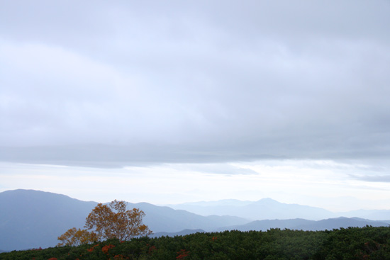 その途中、肩ノ小屋口の先のヘヤーピンカーブを曲がったあたりで降ろしてもらい、撮影しながら車道をバスの待つ位ケ原山荘まで歩いて下った。