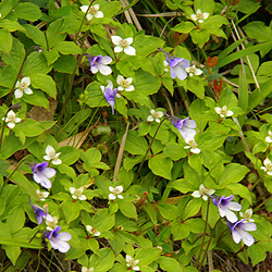 このブナ林の道は長い。ブナの巨木やツルアジサイ・イワガラミを探したり、時々、ブナ、マイズルソウやシダなどを写しながら下る。そして包み込まれるような高いブナ林の