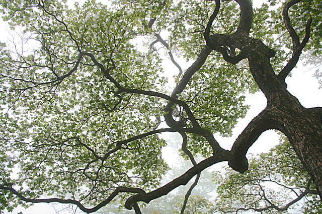 思って登って行くと、予想に反して、シロヤシオとミツバツツジが次から次へ現れ、感動する。それに霧が流れてきて幻想的で、もう、ここだけでいいと