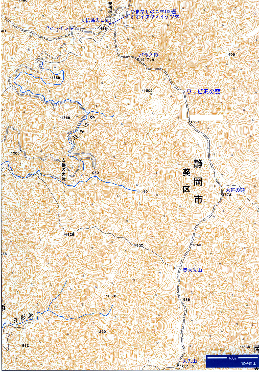 大笹の頭10:55〜11:00--奥大光山11:39〜12:00--大笹の頭12:40--ワサビ沢の頭13:30--バラノ段14:29--安倍峠入口(P)15:10