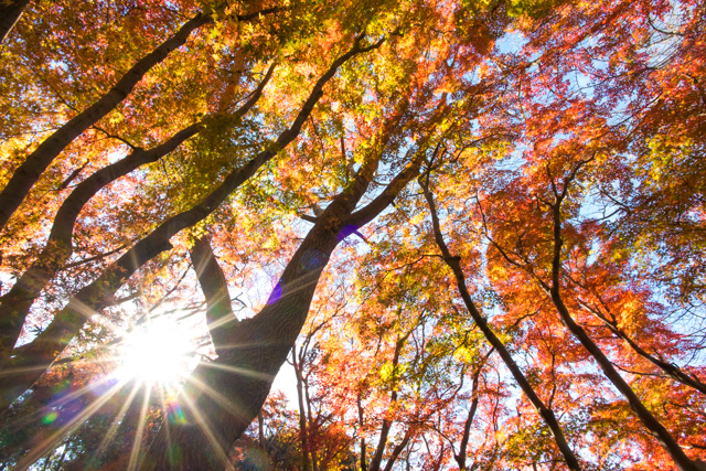 逆光にかがやく紅葉は見事であった。紅葉の下で昼食後、いつものように永福寺跡、鎌倉宮、鎌倉八幡宮と通り、鎌倉駅へと向かった。