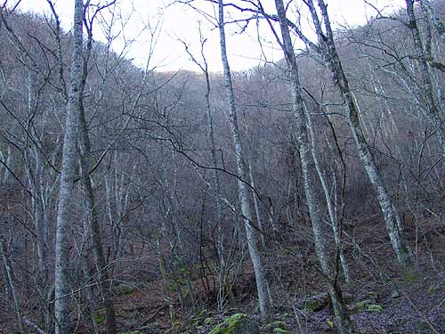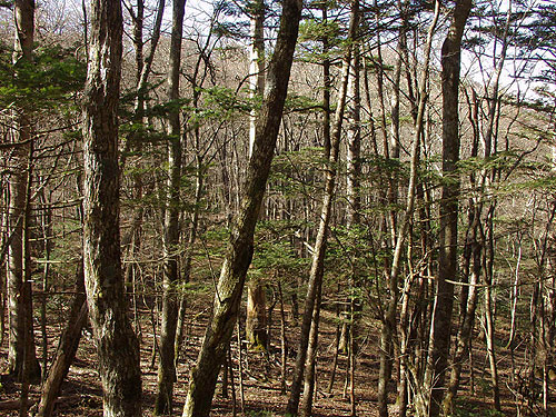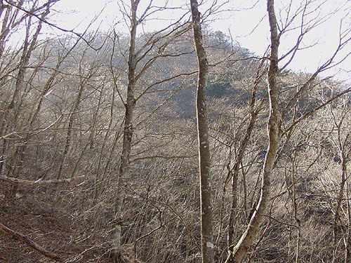 大谷ケ丸から下った鞍部の樹林