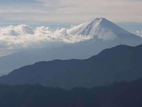 第一ピークの尾根からかいま見えた富士山