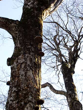 大谷ケ丸鞍部のサルノコシカケ生えるブナの枯木立