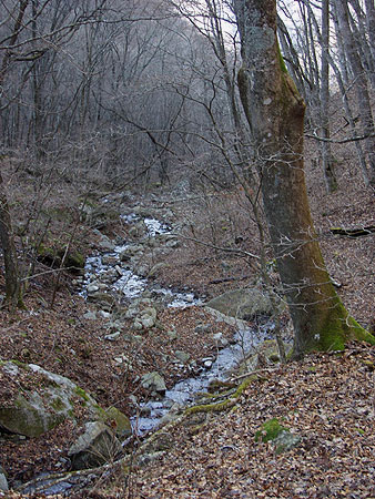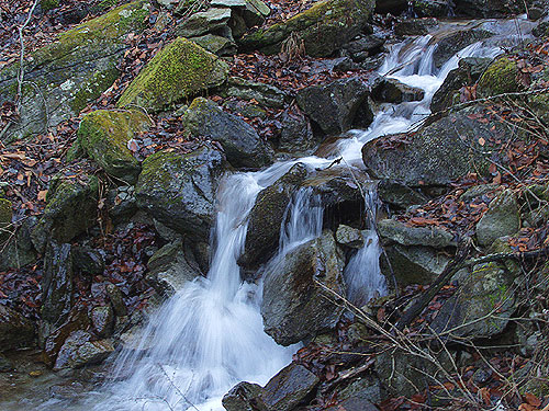 米背負沢より大谷ケ丸・滝子山(03-12-04歩く) なぜ、滝子山は米背負沢からなのか。最近までこのルートは想像さえもしていなかった。 11月に米背負沢から南大菩薩のハマイバ丸に登って、南大菩薩の山で残るは大谷ケ丸だけとなった。 大谷ケ丸は米背負沢から1.5時間で行ける。それだけではもったいないので、 富士山展望の山、滝子山まで足を伸ばすことにしたのが今回の米背負沢からの理由である。 < 初冬の米背負沢 > 7:30に米背負沢出合の駐車場を出発した。冬の低い朝日は米背負峠の尾根に さえぎられて、沢は寒々としている。しばらく登って行くと沢を取り巻く周りの山々の上の木々が朝日で ピンクに染まってくる。そして米背負峠に近くなってサァーと木々に日が差し込んできた。 帰りは大谷ケ丸方面から斜光が差し込み、やがて陰っていった。 ルートの紹介は「米背負峠からハマイバ丸」で紹介しているので省略する。ただし、沢の水に濡れた 石が薄く凍り付き滑るのでステッキを使い慎重に徒渉する必要がある。 ![]()