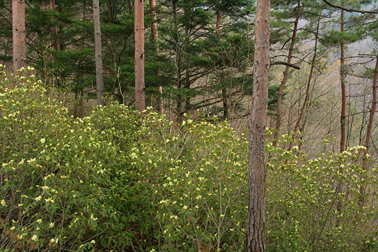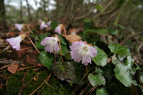 ![]() イワウチワ群落 ![]() イワウチワ ![]() ヒカゲツツジ群落 ![]() 鶴川の岸辺のカタクリ |