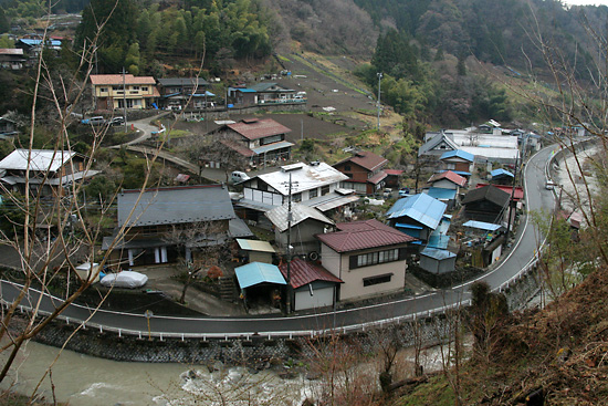 | イワウチワ、ヒカゲツツジ咲く坪山 ('08-04-09 歩く) 近所の桜の満開は過ぎたが、丹沢など近郊の山はまだ芽吹いてもいない。この時期、どこの山に登ったらいいのかと 迷う。山のブログなど読むと奥多摩の山ではイワウチワ・ヒカゲツツジが咲きだしたとの記事がある。イワウチワとヒカゲツツジと言えば坪山 が大分前から話題になっている。1/25000地形図にも山の専門地図にも載っていないので登るのを見合わせていたが、インターネットで調べると結構 記録や地図も出てくる。それらを参考にさせてもらって登ってみた。 中央高速藤野・上野原ICで降りる。小管方面の標識に従って、20号線に突き当たって左折し、さらに少し行って右斜めに入ってゆく。しばらく行くと、 棡原(ゆずりはら)の交差点となり、ここはあきる野方面と別れ左に橋を渡って桜満開の道を小管方面に向う。 しばらく 鶴川に沿って行くが、一旦、初戸で鶴川と別れ、また郷原の「びりゆう館」あたりで一緒になる。大分標高が高くなってきたのだろうか、桜は1分くらいで 薄っすらとピンクになっている程度、梅の方が満開である。 びりゆう館入口を見送り、神社と「緑の直売所」の前を通り過ぎると、 やがて左手の鶴川沿いに渓流釣りのお客用であろうか駐車場が見えてくる。そこに車を置く。既に一台駐車している。 昨日の台風のような嵐のせいで鶴川は濁流となり、廻りの風景も寒々とした冬枯れであるが、 良く見ると、サンシュであろうか薄っすらと黄色になった木立ちがアチコチにあり、春の訪れを感じる。 小管方面前方150m位のところに 鶴川に掛かる橋が見える。歩いてゆくと橋の袂に坪山・公衆トイレの標識が立っている。ここが登山口のようである。 橋を渡って右に行くとトイレがある。その後ろを登って行くと、かたくりの咲くところとなるが、日が差していないために、 まだ花びらを閉じたままである。そのあと、前に見える山にいきなり登るのかと思ったら、しばらくトラバース気味に 鶴川に沿って小管方面にゆく。そうすると、御岳神社バス停傍の登山口からの山道と合流する。そして少し行くと東ルートと西ルートの分岐となる。 しかし、道標には、東ルート方面は坪山と書いているだけである。西ルートは西ルートの道標が別に立っている。 ここでは真っ直ぐ花の多い西ルートへと進む。 杉林の斜面の山道を廻りこむように行くと沢に掛かる丸木橋をわたる。ここから杉林の斜面の登りとなる。すぐ、開けた畑のようなところに でるがまた杉林の道に入り、丸木橋から15分も登ると尾根に乗る。そして登るにしたがって杉林から自然林へと変わってくる。左手前方には冬枯れの木立ちを透かして東ルート尾根や坪 山らしきピークが見えてくる。周りを見ても何も芽吹いていない。これでイワウチワやヒカゲツツジが咲いているだろうかと心配になるが、尾根に乗って20分余して、尾根が狭くなってきて待望のイワウチワが現れる。 つぼみなのか、花が閉じたものが多い、そして以前奥多摩で見たイワウチワに比べて小型でピンクの色が薄い感じがする。ヒカゲツツジもぽつぽつ咲いたのがでてくる。 来るのが早かったかな、と思いながら、さらに10分ほど登ると本格的な群生地となった。そこは花が大きく、ほとんどが咲いていて満開と言う 感じである。そして両側が花を一杯付けた丈の低いヒカゲツツジの小道となる。そしてさらに進むと赤松が増え、その林立の間を埋め尽くすヒカゲツツジの大群落が現れた。 花付きもいいようである。以前、アカヤシオ咲く山で見たことがあるが、パラパラで、ヒカゲツツジはそういうものかと思っていたので、本場のこのヒカゲツツジの群落には感動した。 これよりトラロープの張ってある本格的な登りとなる。8分ほどで登りきると、イワウチワの第三の群生地がある。そしてまた同じよう なトラロープの登りを繰り返してゆくと「岩かがみ」標識がでてくる。花にはまだ早いが結構な群生が続く。そして、珍しく展望のよいところに達する。ここで一息入れる。左り眼下に飯尾・郷原の集落、右には奈良倉山から続く尾根が、正面上には 坪山らしきピークが、まじかに見える。もうひと頑張りと気合を入れてトラロープの登りを登ってゆく。これで終わりかと思ったら、トラロープの登りが奥にもう一つあった、がっくりである。気を取り直して登りようやく山頂に着いた。 下りはインターネットで知った「びりゅう館・阿寺沢」方面へ行って途中から花の里・緑の直売所へ下るコースを行くことにする。この方が「びりゅう館」まで行くより駐車場に近いからである。 冬枯れの自然林を急降下し、そして登り返すと1034mのピークに達する。苦労した割には余り下っていない。その後も小さいアップダウンが続く。1時間ほど、つぼみのついていないツツジがすごく多い自然林の道を行くと、手製の道標が立つ花の里・緑の直売 所分岐に到着する。 ここを花の里・緑の直売所方